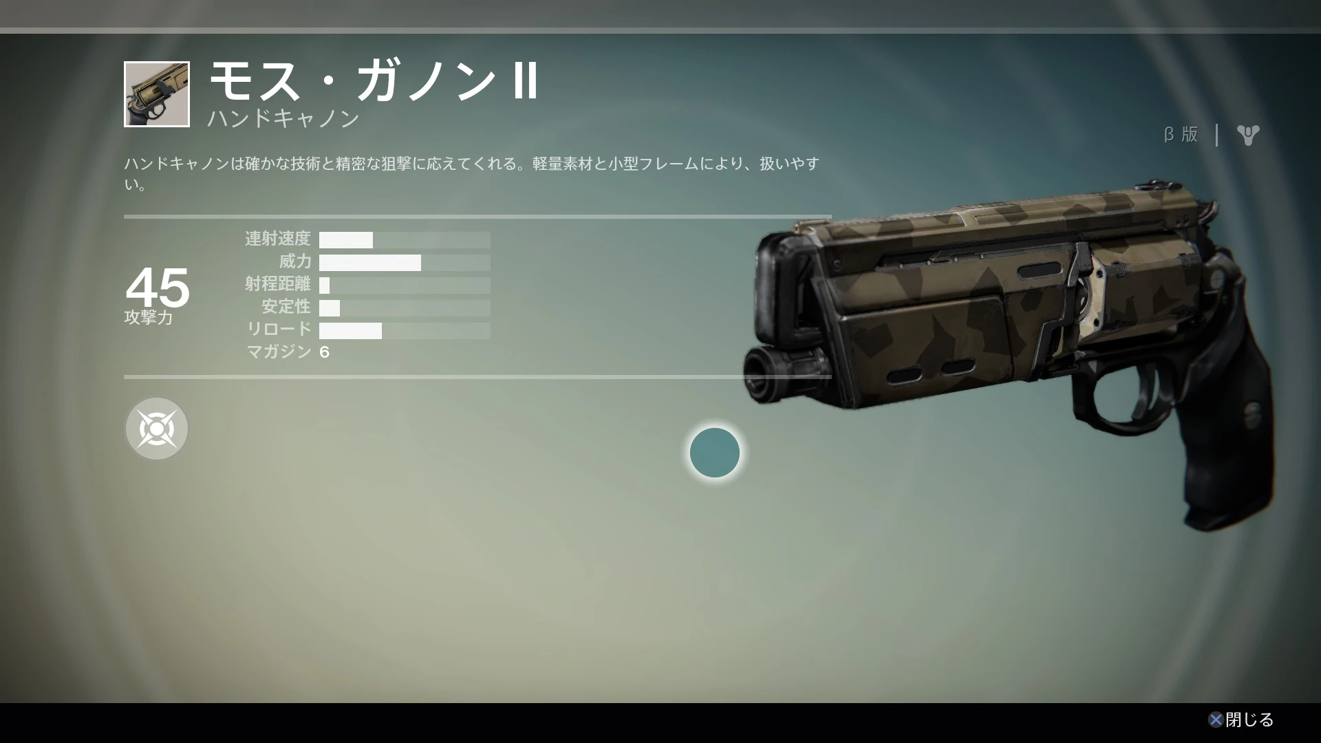 モス・ガノン II (Mos Ganon II) とは、『Destiny』に登場するコモンのハンドキャノン。