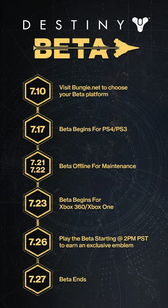 - ↑ PlayStation.com "Destiny Beta Information". Retrieved Jul 18, 2014.